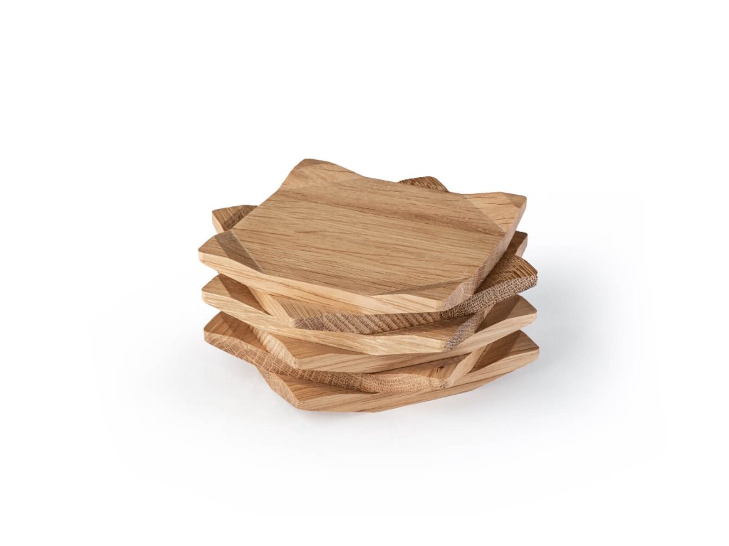 “Put the coasters back!” You might find yourself adapting this legendary phrase once your guests fall in love with these elegant coasters that protect wooden and glass surfaces from liquids and thermal shocks. The design was created by Petr Novague, who played with angles and infused an ordinary object with extraordinary playfulness. Unlike traditional coasters, ours don’t need a holder — when not in use, you can arrange them on the table into a small cubist sculpture.